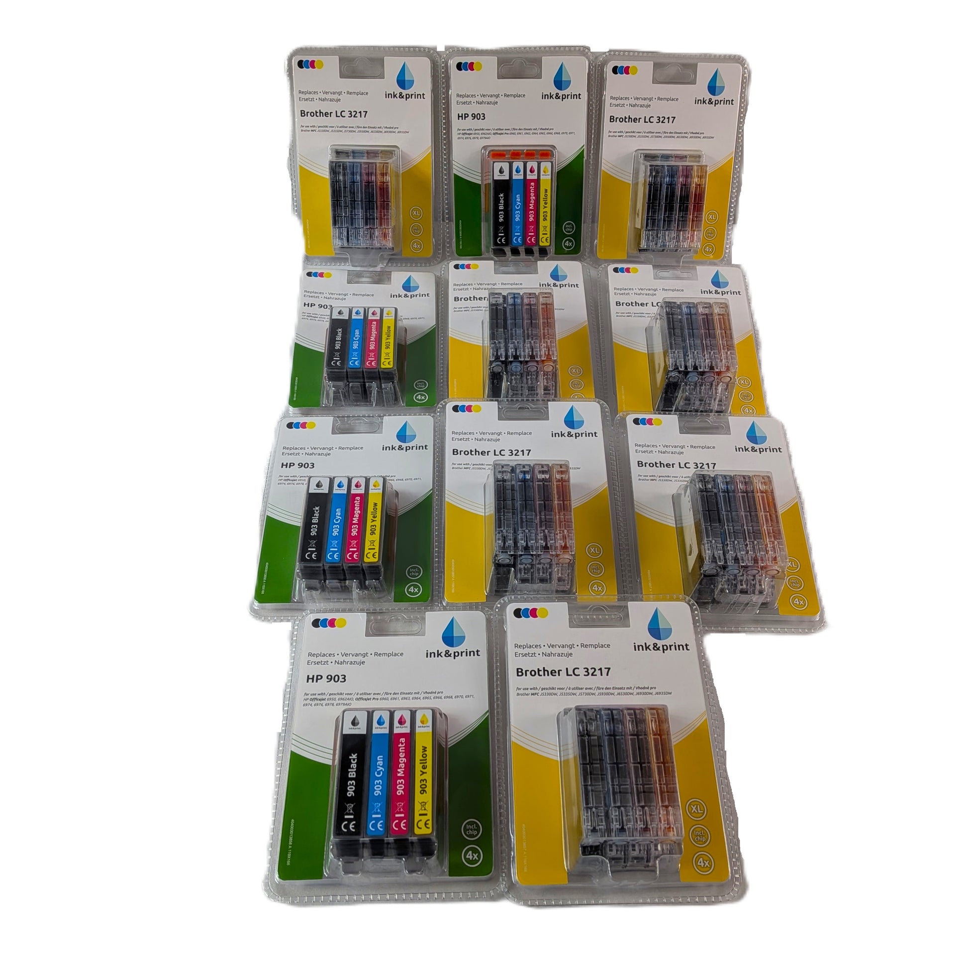 11 Cartouches d'encre Couleurs HP / Brother